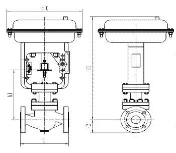 | 閥門尺寸 | L | H1 | H2 | h1 | C | 執(zhí)行機(jī)構(gòu) | | inch | mm | ANSI 150 PN16、25 | ANSI 300 PN40 | ANSI 600 PN64、100 | | 3/4 | 20 | 184 | 7.25 | 184 | 7.25 | 206 | 8.12 | 425 | 53 | 213 | 288 | ZHB-22 | | 1 | 25 | 184 | 7.25 | 184 | 7.25 | 210 | 8.25 | 435 | 58 | 218 | 288 | ZHB-22 | | 11/4 | 32 | 200 | 7.87 | 200 | 7.87 | 251 | 9.88 | 448 | 70 | 231 | 288 | ZHB-22 | | 1 1/2 | 40 | 222 | 8.75 | 222 | 8.75 | 251 | 9.88 | 448 | 75 | 231 | 288 | ZHB-23 | | 2 | 50 | 254 | 10 | 254 | 10 | 286 | 11.25 | 487 | 83 | 255 | 288 | ZHB-23 | | 21/2, , , , , , , , , | 65 | 276 | 10.88 | 276 | 10.88 | 311 | 12.25 | 628 | 93 | 311 | 360 | ZHB-34 | | 3 | 80 | 298 | 11.75 | 317 | 12.50 | 337 | 13.25 | 645 | 98 | 328 | 360 | ZHB-34 | | 4 | 100 | 352 | 13.88 | 368 | 14.50 | 394 | 15.50 | 656 | 115 | 328 | 360 | ZHB-34 | | 5 | 125 | 420 | 16.53 | 400 | 15.75 | 500 | 19.69 | 806 | 125 | 389 | 470 | ZHB-45 | | 6 | 150 | 451 | 17.75 | 473 | 18.62 | 508 | 20.00 | 857 | 143 | 440 | 470 | ZHB-45 | | 8 | 200 | 600 | 21.38 | 568 | 22.38 | 610 | 24.00 | 926 | 180 | 514 | 470 | ZHB-45 | ※由于產(chǎn)品改進(jìn)和技術(shù)創(chuàng)新或者一些特殊要求,各種閥門的連接尺寸可能會有所變化,請聯(lián)系我司技術(shù)部,以得到新的產(chǎn)品資料。我們也可按照你的現(xiàn)場要求定做特殊的結(jié)構(gòu)尺寸的閥門。閥門的法蘭焊接坡口等尺寸連接按照各種標(biāo)準(zhǔn)的想關(guān)要求。
