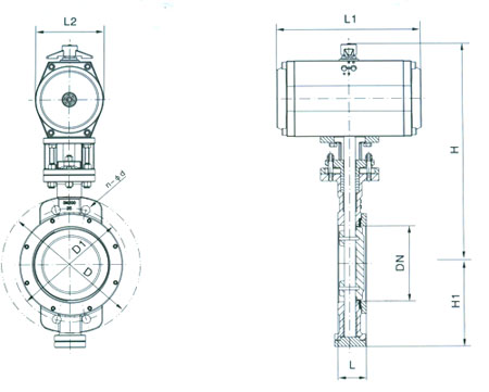 GT系列氣動執行器可配至DN600,AW系列氣動執行器可配蝶閥至DN200~1600。