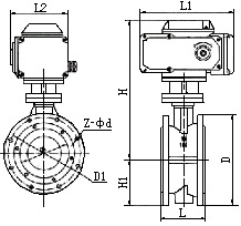 | 公稱徑通DN | L | H | H1 | D | D1 | Z-φd | L1 | L2 | 重量(Kg) |
