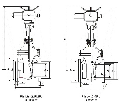 Z941H電動閘閥主要連接及外形尺寸(PN25)