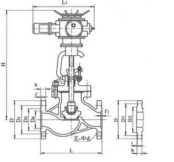 電動法蘭截止閥主要外形尺寸、連接尺寸及質量