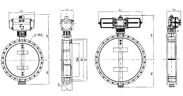 閥蓋形式分為標準型和外軸承型二種,標準型適用于口徑DN500以下,外軸承型適用于口徑DN600以上。執行機構采用進口的雙活塞氣動執行機構,具有輸出力大而平穩、機構輕巧、重量輕等優點。