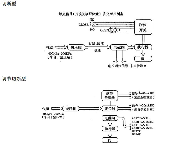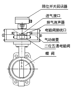 氣動調節蝶閥由氣動活塞式執行機構與蝶閥組合構成。(如圖GT系列氣動執行機構相同規格有雙作用式、單作用式(彈簧復位);)