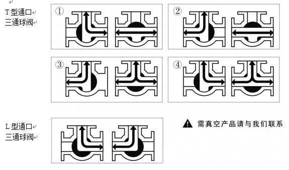 三通球閥標(biāo)準(zhǔn)閥芯有L型三通雙口孔道和T型三口孔道兩種,改變球芯與管道的相對角度,可以對三支管道流體實現(xiàn)不同的組合控制:T型孔道可起分流合流作用,L型孔道起配比作用,適用于液體、氣體、蒸汽等介質(zhì)的配比調(diào)節(jié)與控制。