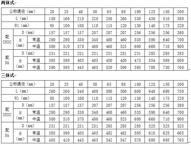 注:公稱壓力、公稱通徑超出列表范圍的產(chǎn)品可與本公司商洽解決