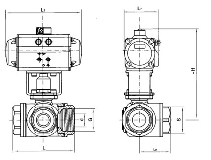 氣動三通O型球閥由氣動活塞執(zhí)行機構(gòu)和三通球閥組成。氣動三通球閥改變球芯與管道的相對位置,可以對三條管路流體實行不同的組合控制。