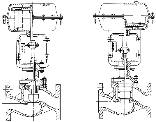 外來的氣動(dòng)信號壓力輸入膜室后,此壓力作用在膜片上產(chǎn)生推力,此力壓縮彈簧組,并使推桿移動(dòng)而帶動(dòng)閥桿使閥芯開關(guān),直至推力與彈簧組被壓縮后的反力平衡而穩(wěn)定在某個(gè)行程上為止。依照上述原理,閥芯的行程大小與輸入信號壓力的大小形成一定的比例關(guān)系。