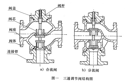 三通調(diào)節(jié)閥是由氣動(dòng)薄膜執(zhí)行機(jī)構(gòu)與三通閥調(diào)節(jié)機(jī)構(gòu)二部分組成。其結(jié)構(gòu)